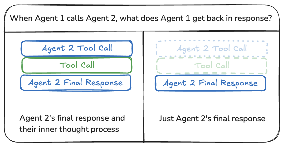 일반적인 관행은 공유 메시지 목록에서 여러 에이전트가 통신하지만 목록에 최종 메시지만 추가하는 것입니다. 이는 모든 중간 메시지(예: 도구 호출)가 이 목록에 저장되지 않음을 의미합니다.