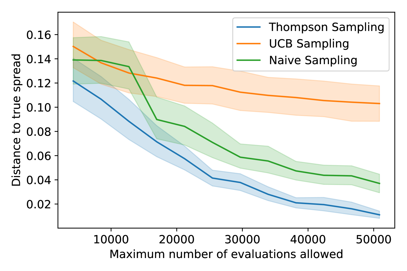 그림 3: 톰슨 샘플링을 사용하는 FORMATSPREAD는 다른 접근 방식보다 훨씬 빠르게 정확한 스프레드 추정치에 수렴하여 체계적인 프롬프트 형식 분석을 계산적으로 실현 가능하게 만듭니다.